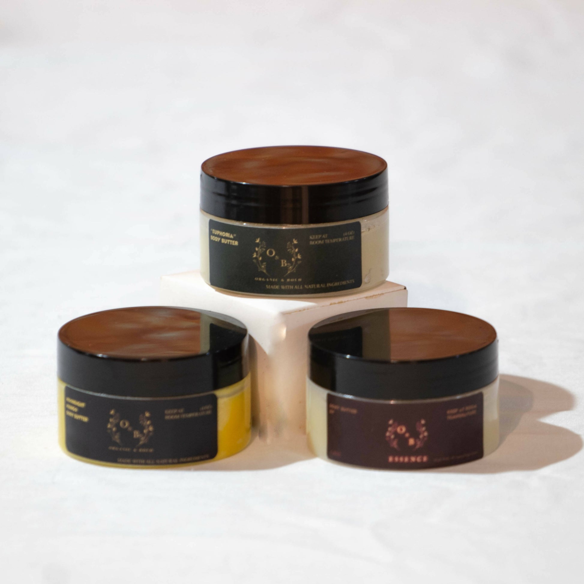 An organic body butter made for your skin to feel essential. Essence by O&B features rose oil, A unique solution to hydrate dry skin, clear acne, reduce signs of aging, minimize the appearance of scars, and help with conditions such as eczema and rosacea. This formula not only helps but gives you that defining glow all throughout each season.