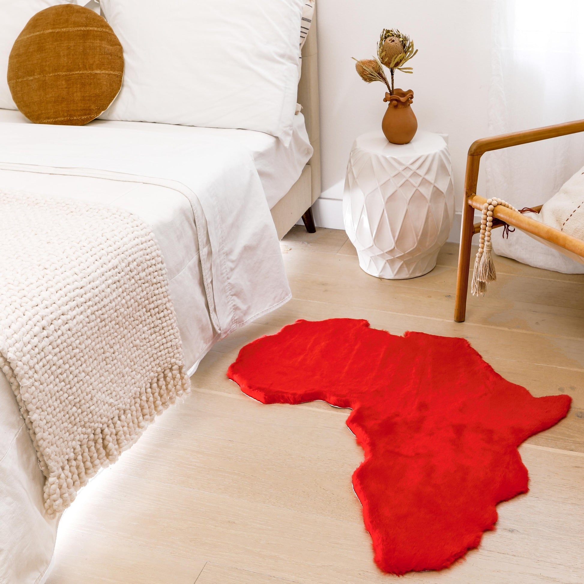 Red Map of Africa Luxurious Faux Fur Rug/Throw