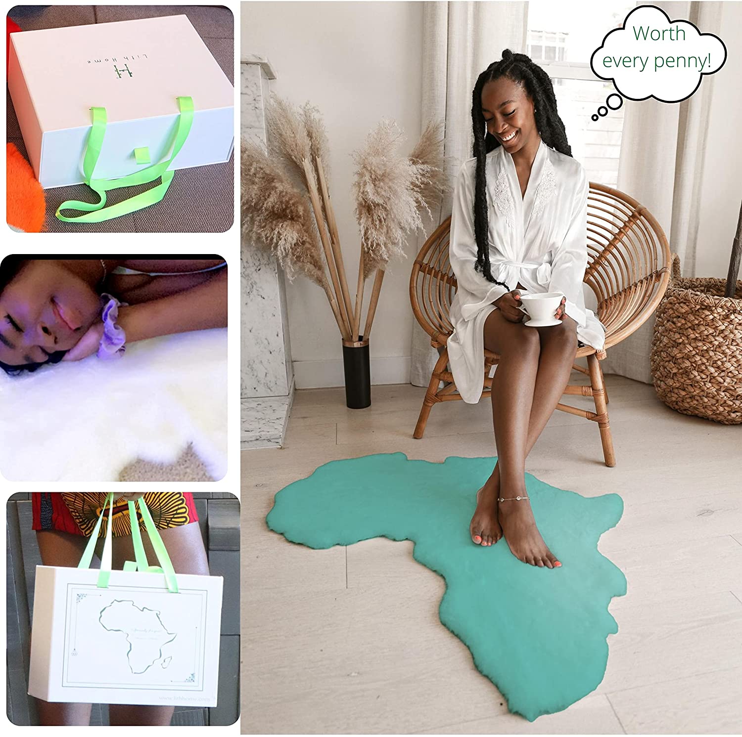 - FREE BONUSES!- Your CRUELTY FREE AFRICA MAP throw rug comes with a LAUNDRY BAG for easy care. Yes, it is MACHINE WASHABLE! Use the gentle cycle and a mild detergent. Lay flat to dry. This rug is made to last!...WE GUARANTEE IT!